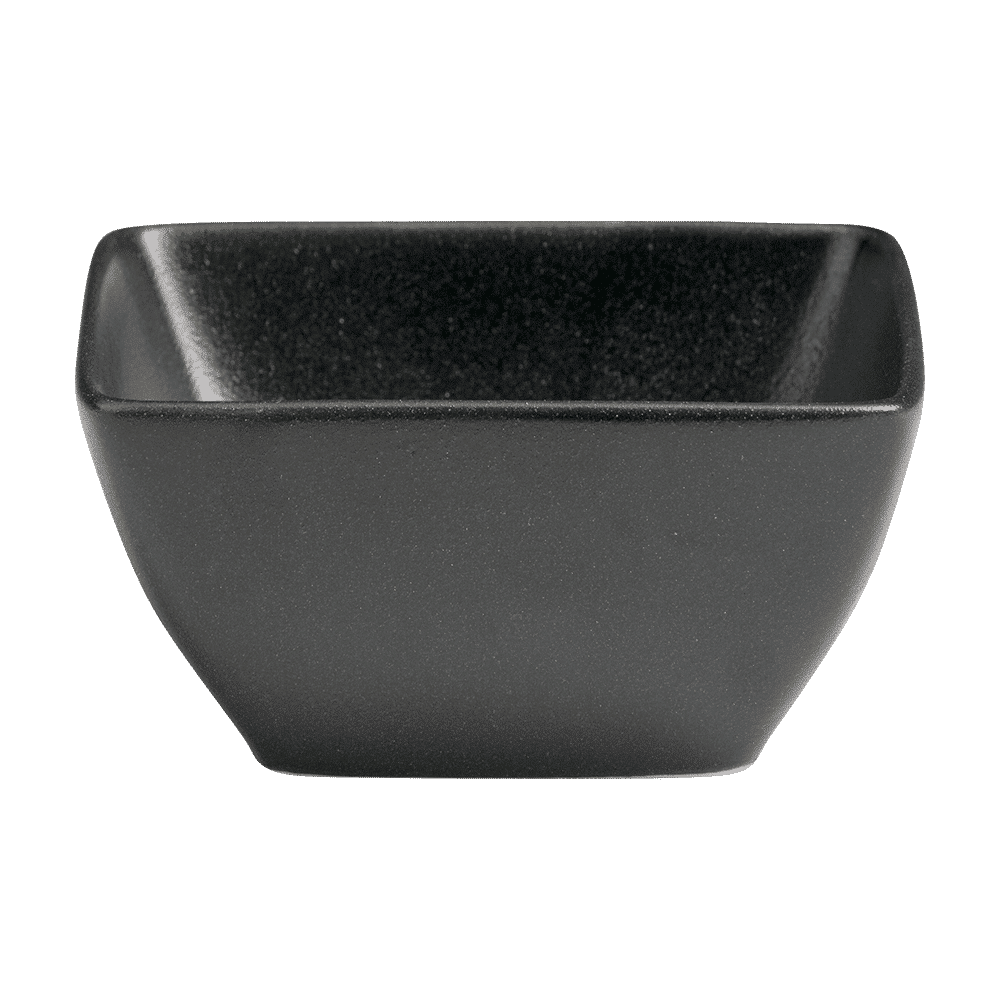 Elegant Onyx Square Bowl with sophisticated matte black finish and clean, geometric design. Features innovative scratch-resistant and fingerprint-resistant surface that maintains pristine appearance throughout service. Generous 12 oz capacity with 4-5/8″ x 2-3/8″(H) dimensions for versatile culinary applications. Perfect for sauces, condiments, small plates, and specialty side dishes. Made with premium Vitrified China and Alumina Body. [View Creative Use Guide →]